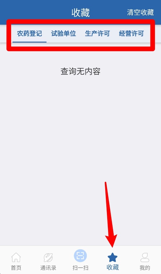 4. 在“收藏”页面,能够查看已保存的农药登记、试验单位、生产许可以及经营许可等资料,便于随时查阅。