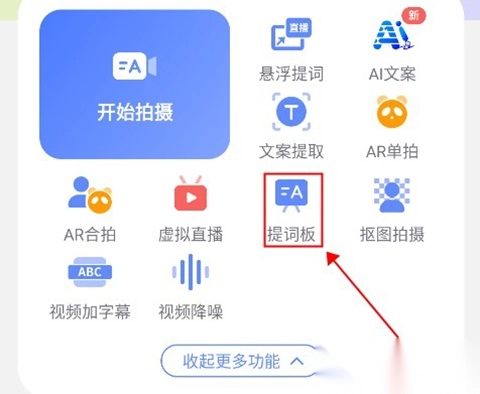 1、在首页点击更多功能,然后点击提词板即可。