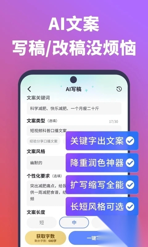 3、【AI文案】长短风格皆可选,独家脚本秒生成
