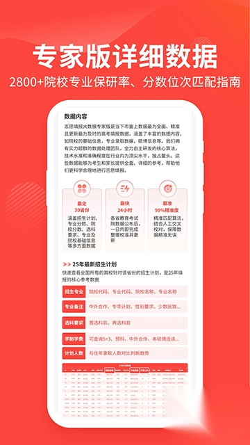 阳光高考网APP,这是一款助力高考志愿填报的辅助软件。它借助人工智能与大数据分析技术,能够为考生呈上全面、精准且有时效性的高考填报指导和建议。在专业选择方面,该软件会依据考生的成绩、兴趣爱好、性格特点以及未来就业方向,综合考量后为考生量身打造个性化的专业向导。如此一来,能帮助学生规避入学后可能面临转专业的困扰。衷心祝愿每位考生都能顺利踏入心仪的院校!