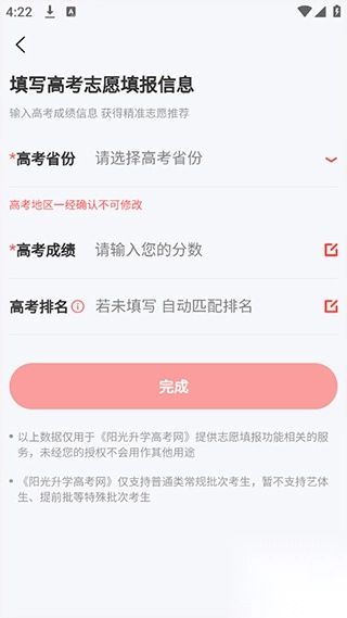 2、随后输入自己所在的省份和成绩,即可生成推荐院校