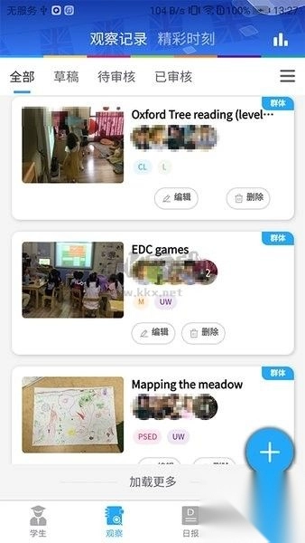 学生日志、精彩时刻内容推送、家长留言、信息发布 观察记录内容推送
