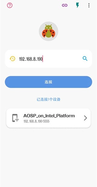 ·进入壳虫ADB助手,首页输入车机上面显示的无线调试地址,点击连接;