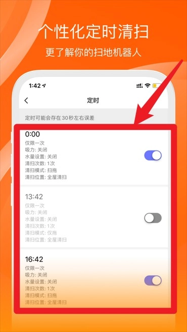 3、进入“定时”功能界面,能够设定多段定时清扫任务,对清扫时间与模式进行自定义设置。