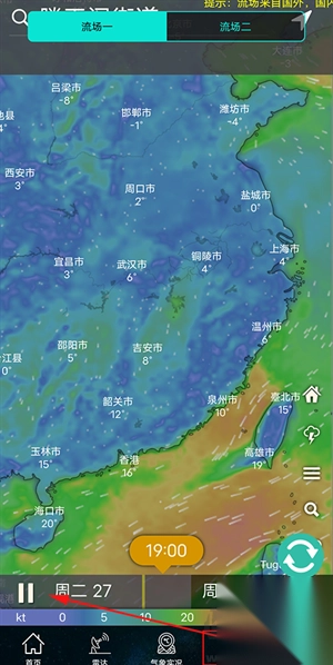 3、除此之外“流畅”栏目中,也可查看当前时段最新气流运动情况