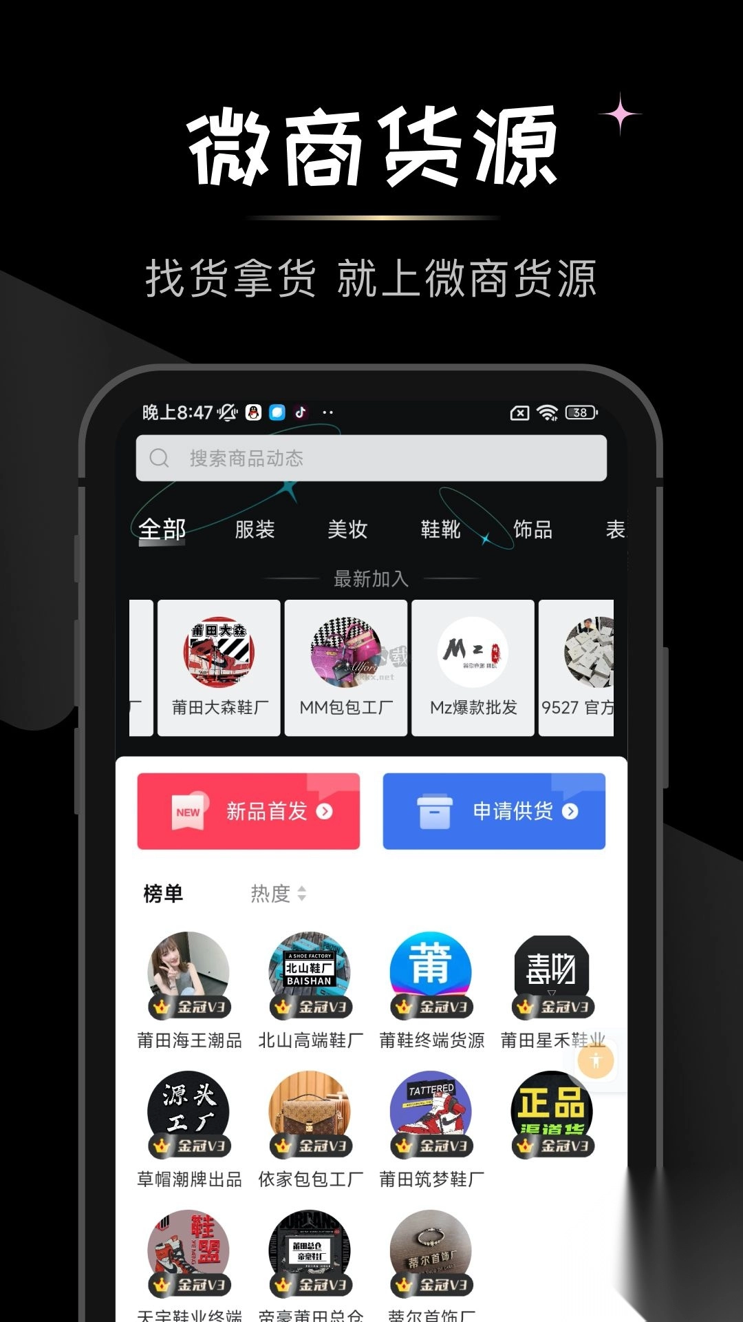 3、极速入驻:海量微商货源正在火热招商中,诚邀每一位怀揣梦想且具备能力的微商加入。在这里,你可以发布信息推广货源,招募代理伙伴,与众多微商一同共享优质货源。