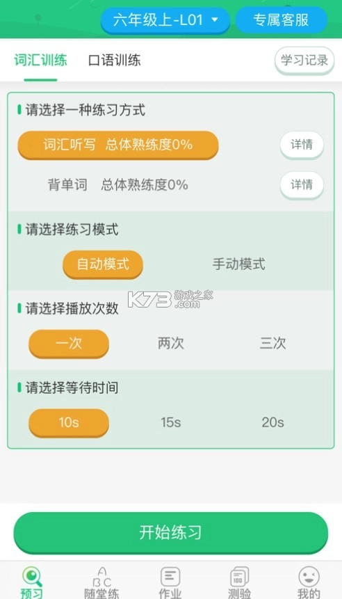预习功能支持口语与词汇训练,提升语言基础能力。