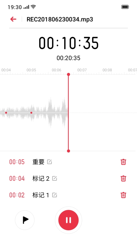 3. 在录音过程中,可以点击标记按钮添加标记,方便定位。