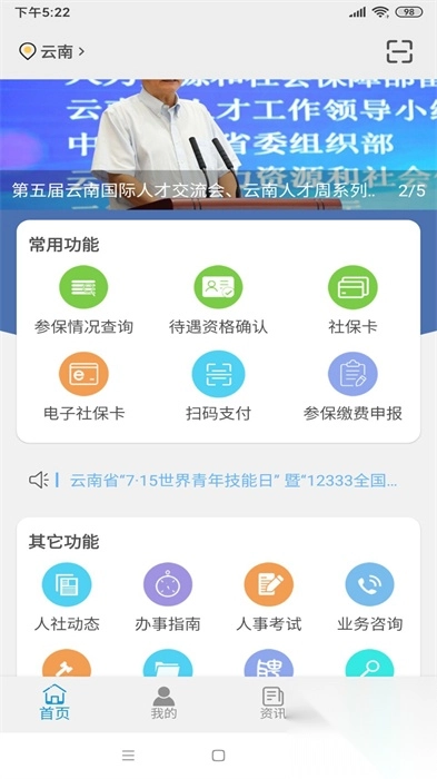 云南人社12333手机APP(电子社保卡),是云南省人力资源和社会保障厅精心打造的社保服务类应用。此平台面向云南省居民,提供社保信息查询、业务办理以及政策资讯等服务,旨在为大家带来方便、快捷的社保服务体验。借助这款手机应用,用户能够轻松打理个人社保事务,畅享更为高效的服务。有需求的用户,赶快下载使用吧!