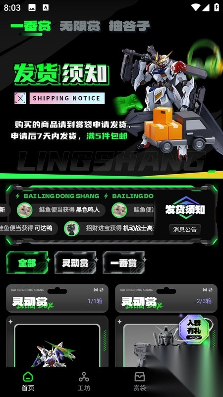 1、在首页中即会有新人专属的礼包,还有发货须知等信息;