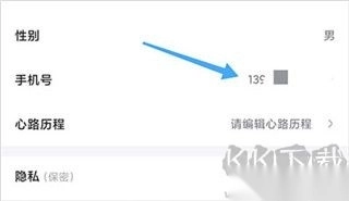 3、资料编辑页面,点选自己的手机号,然后就可以按照步骤验证手机进行更换了。