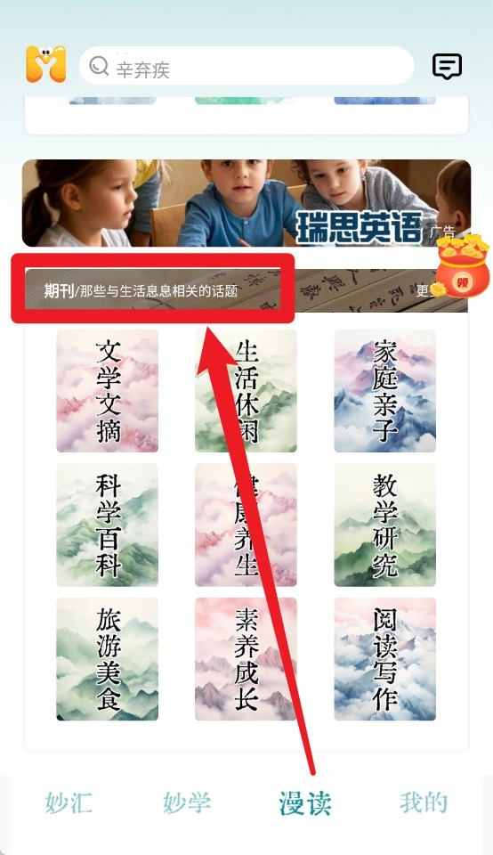 5、查看“期刊专栏”,掌握与生活息息相关的阅读精选主题。
