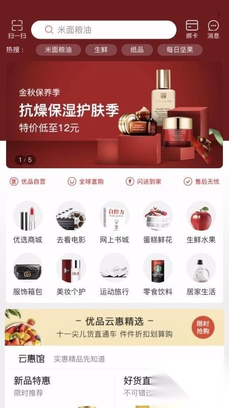 商品类型丰富多样,生鲜水果、户外用品、美肤化妆品等各类商品一应俱全。