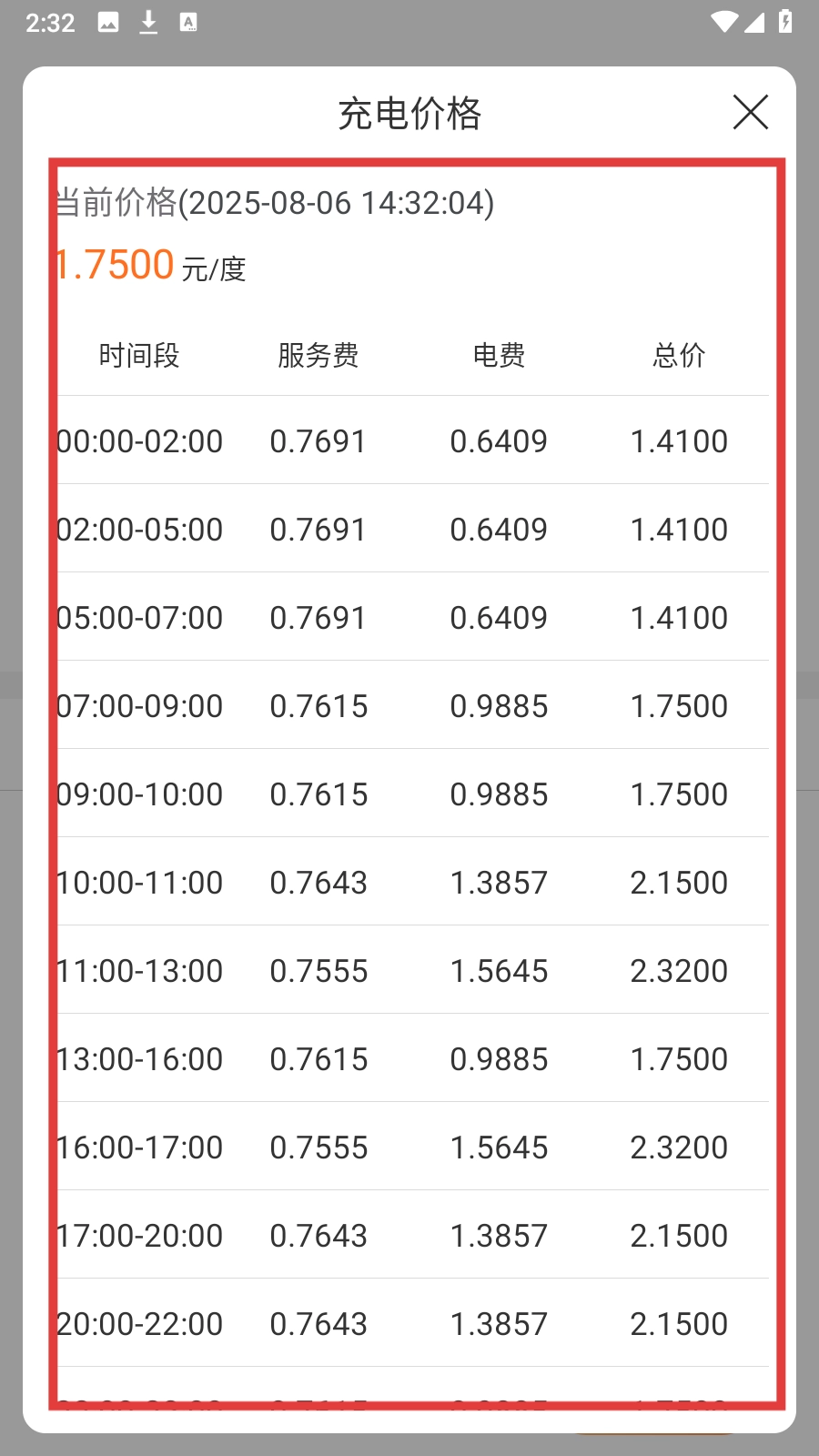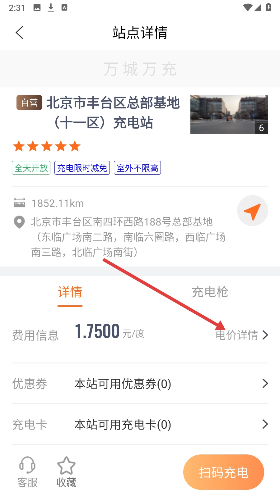 4、在站点详情页面点击【电价详情】,即可查看充电价格。