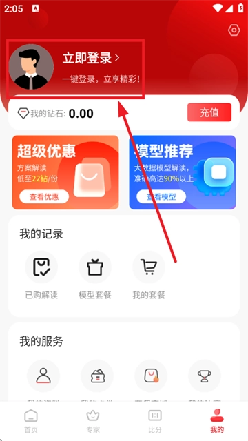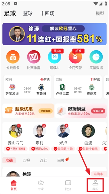 1、第一步,打开球胜比分app,随后点击右下角“我的”。
