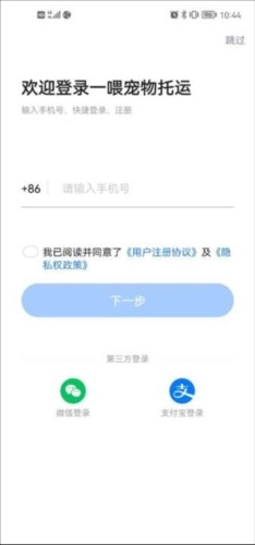 1、首先我们打开一喂宠物托运app,接着进行登录;