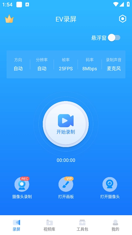 1. 开启软件,借助悬浮窗对录制参数进行设置,接着点击悬浮窗上的“开始录制”按钮,这样就能开启屏幕录制。