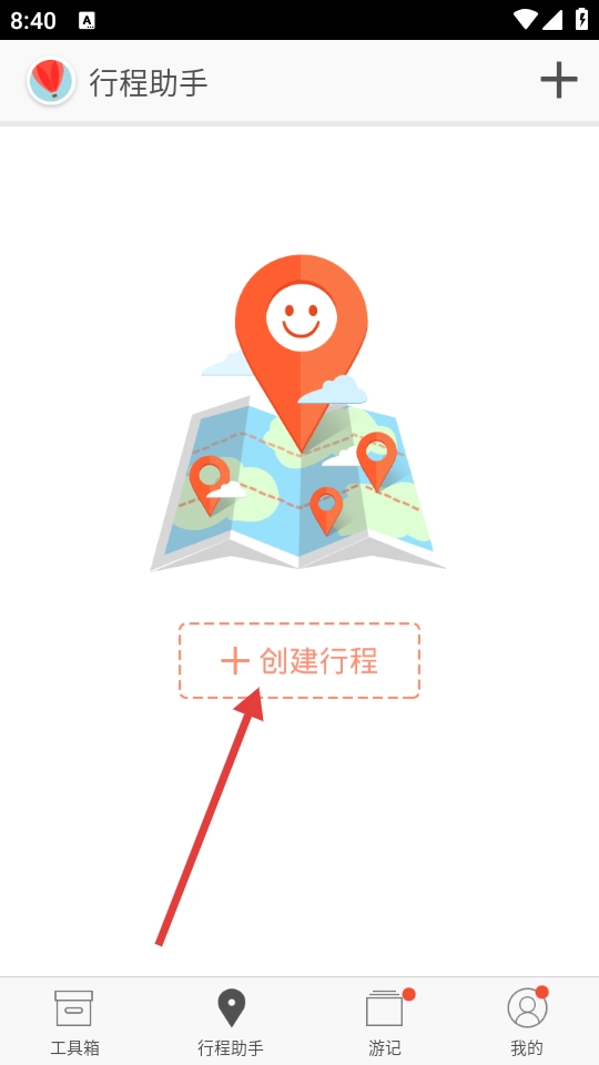 2、在行程助手页面,点击【创建行程】,进入行程设置相关页面。