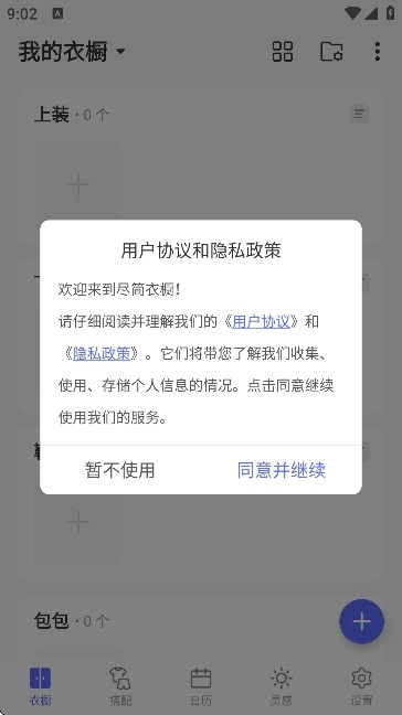 1、下载并安装好这款尽简衣橱APP,然后打开;