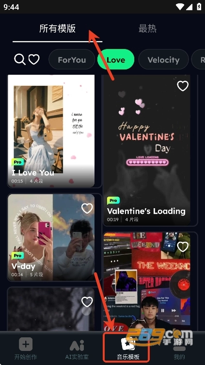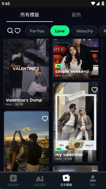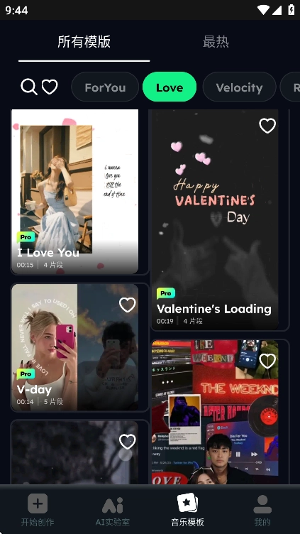 用户们也可以在音乐模版页面挑选自己喜欢的视频模版