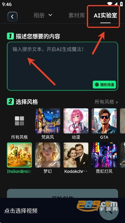用户们也可以在AI实验室输入文本,快速得到自己想要风格的视频